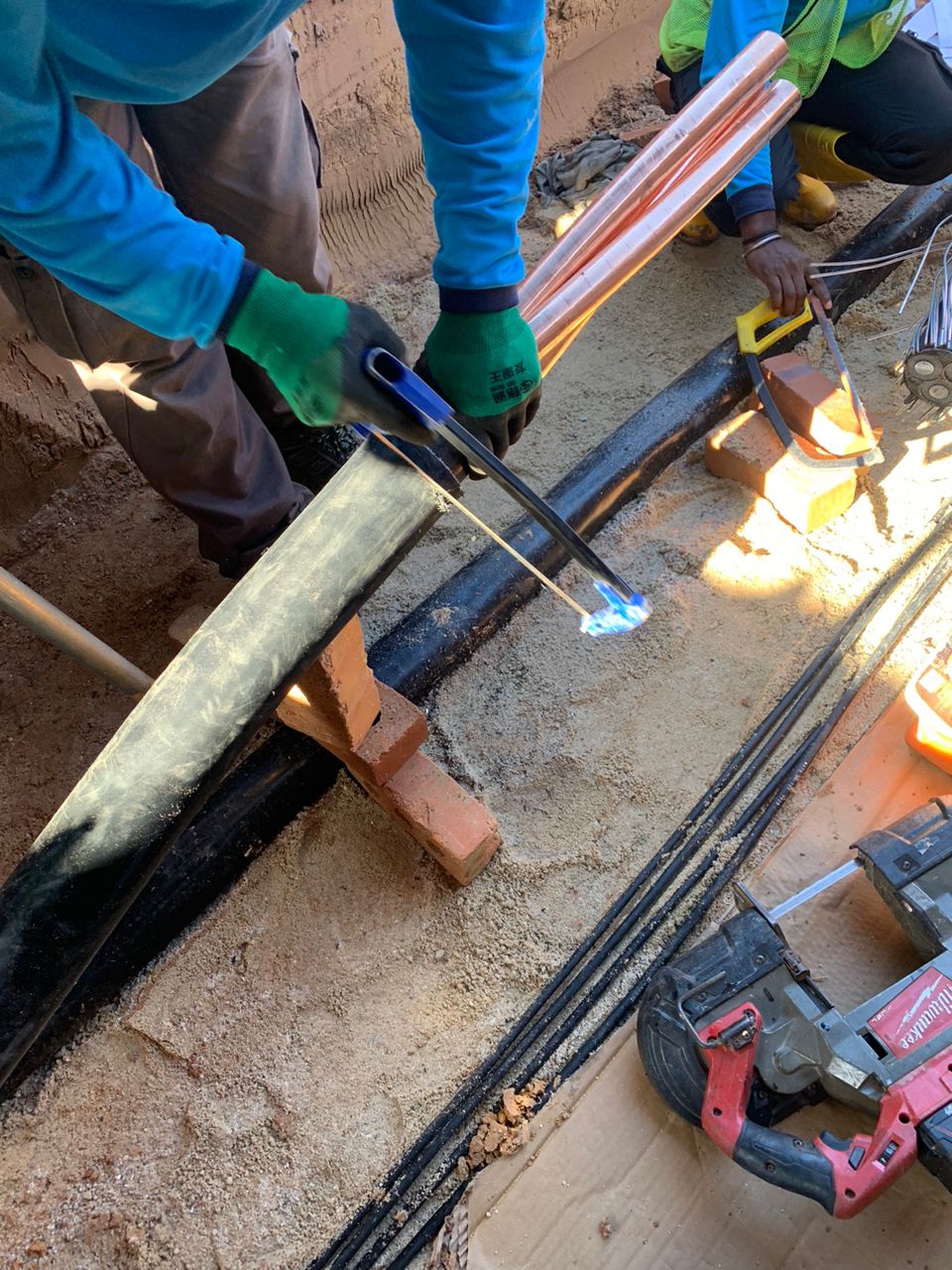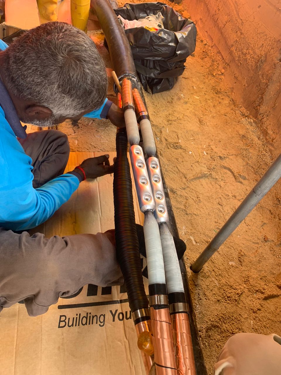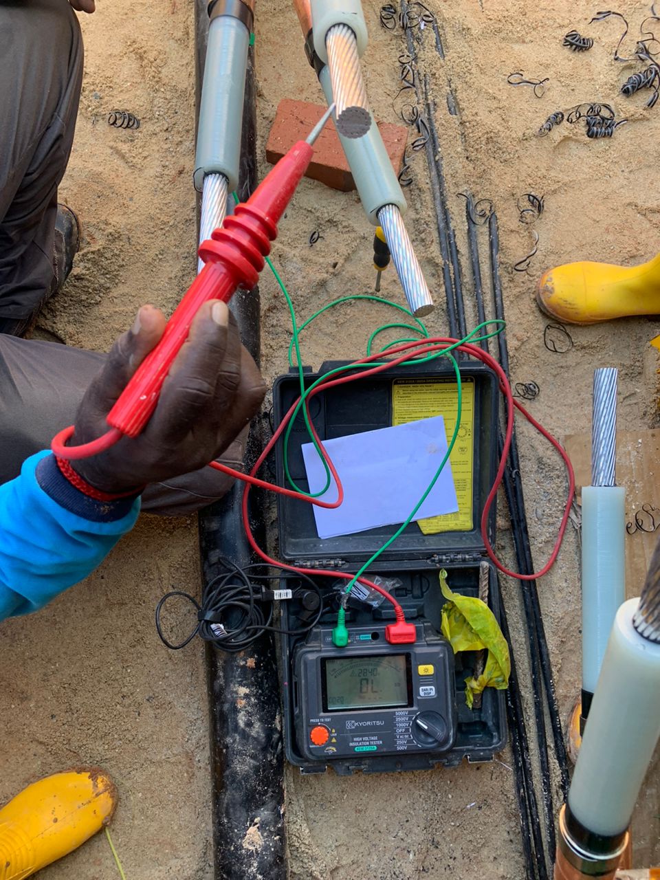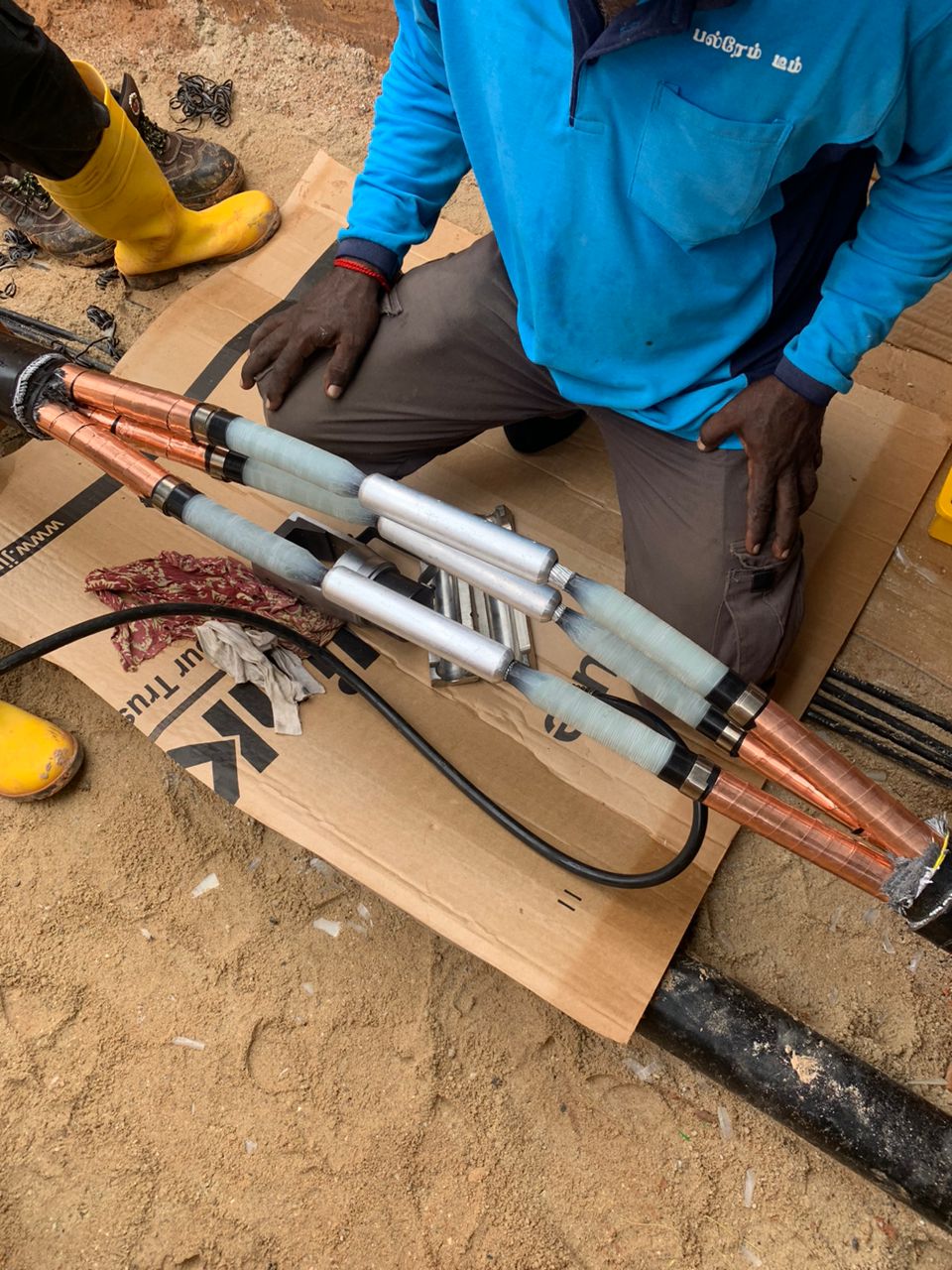 - AC Auxiliaries, DC, Fibre Optics, MV and LV cable laying, jointing, termination and testing work.